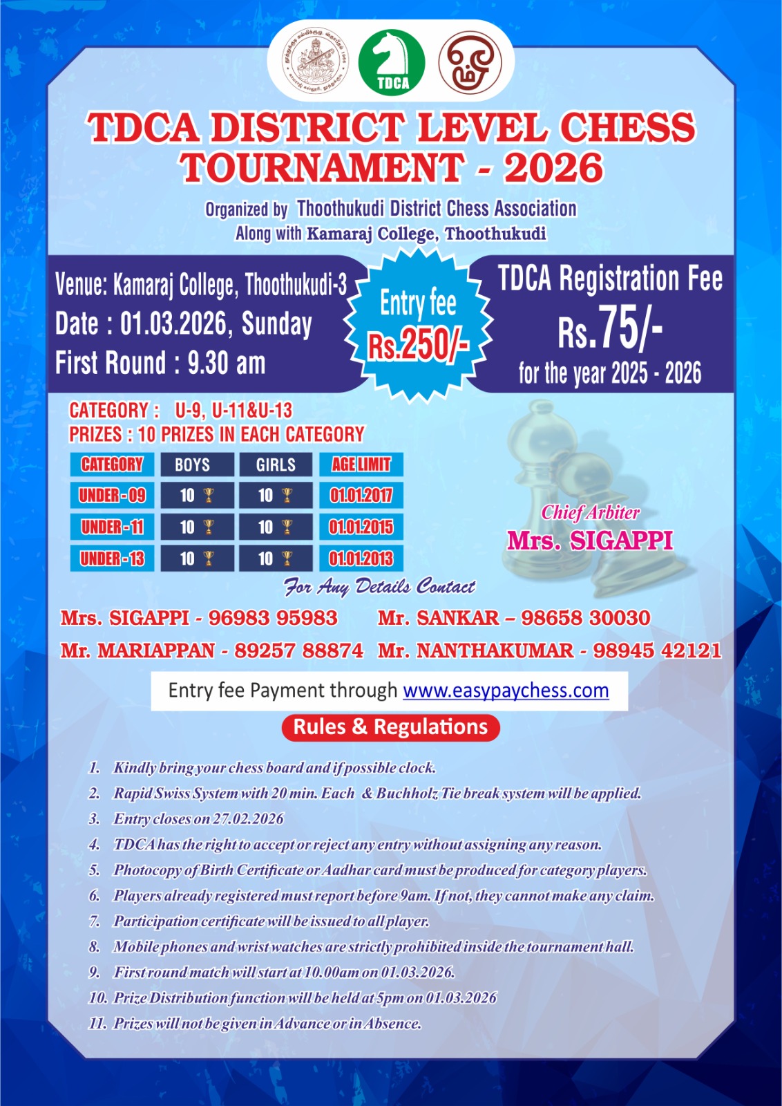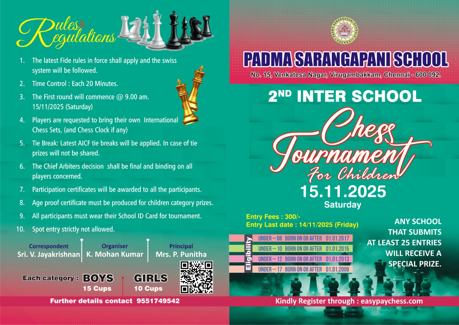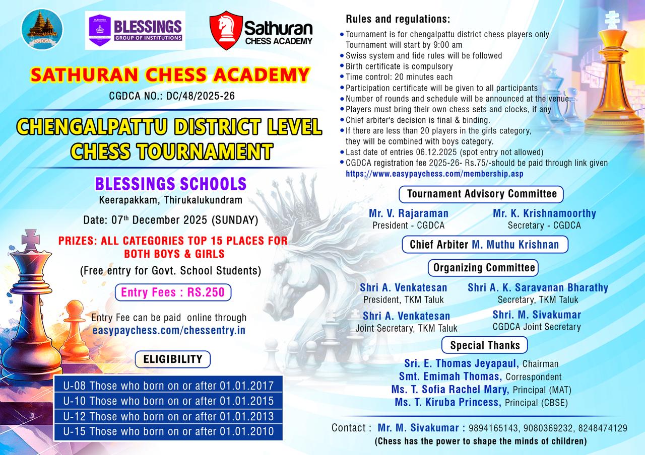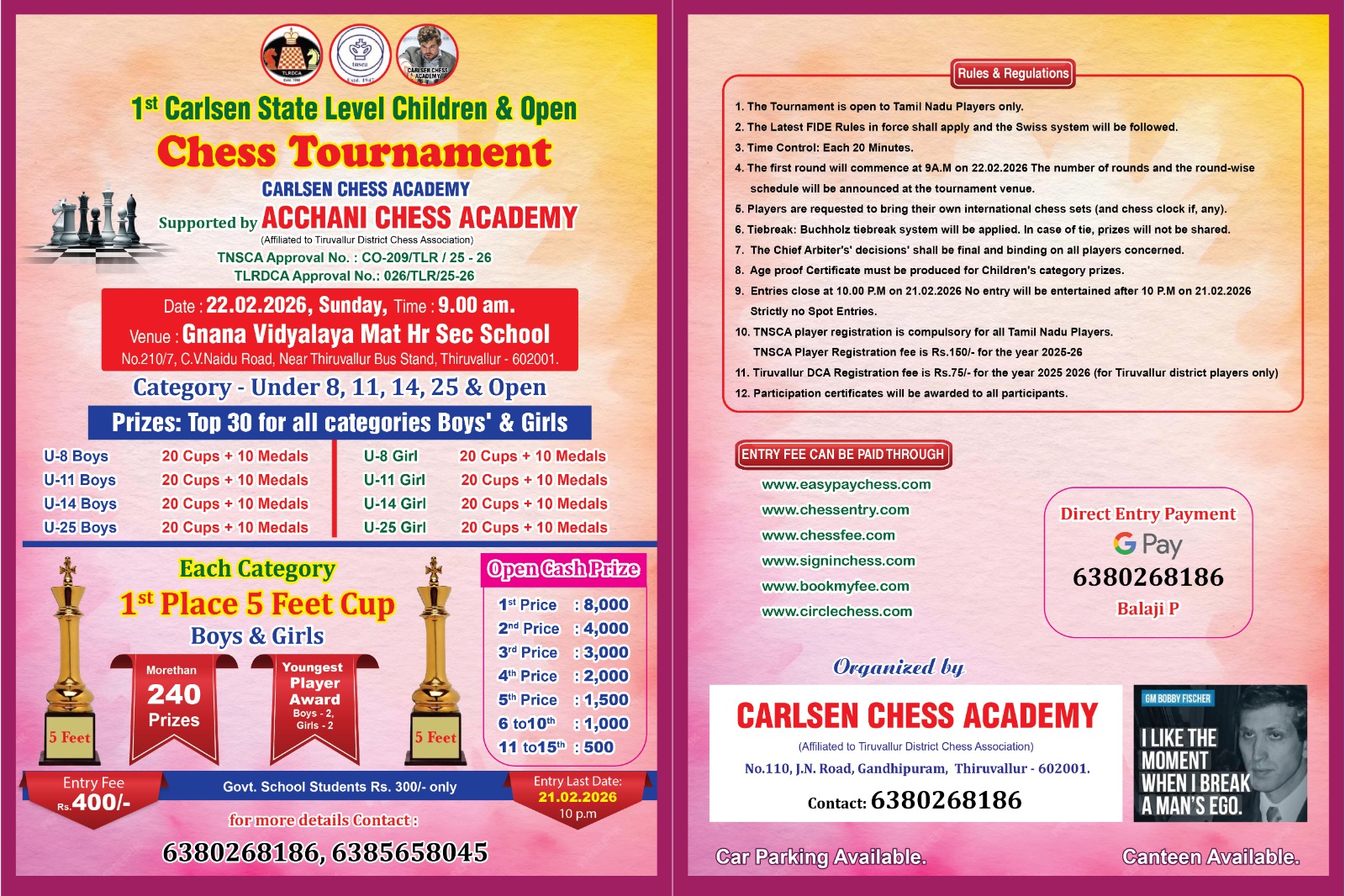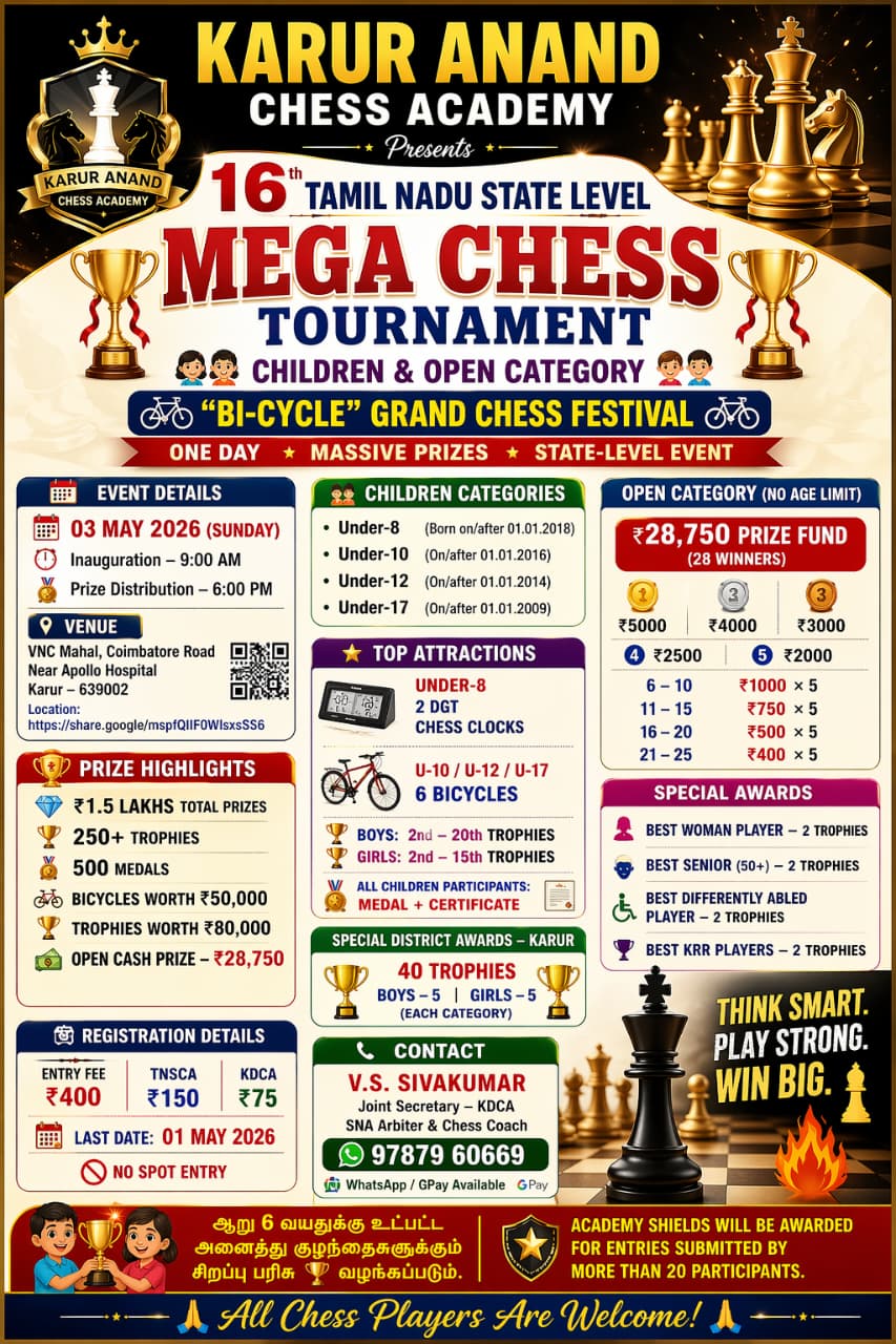 To know Chess Tournament InformationClick here to Join Wats App Channel |